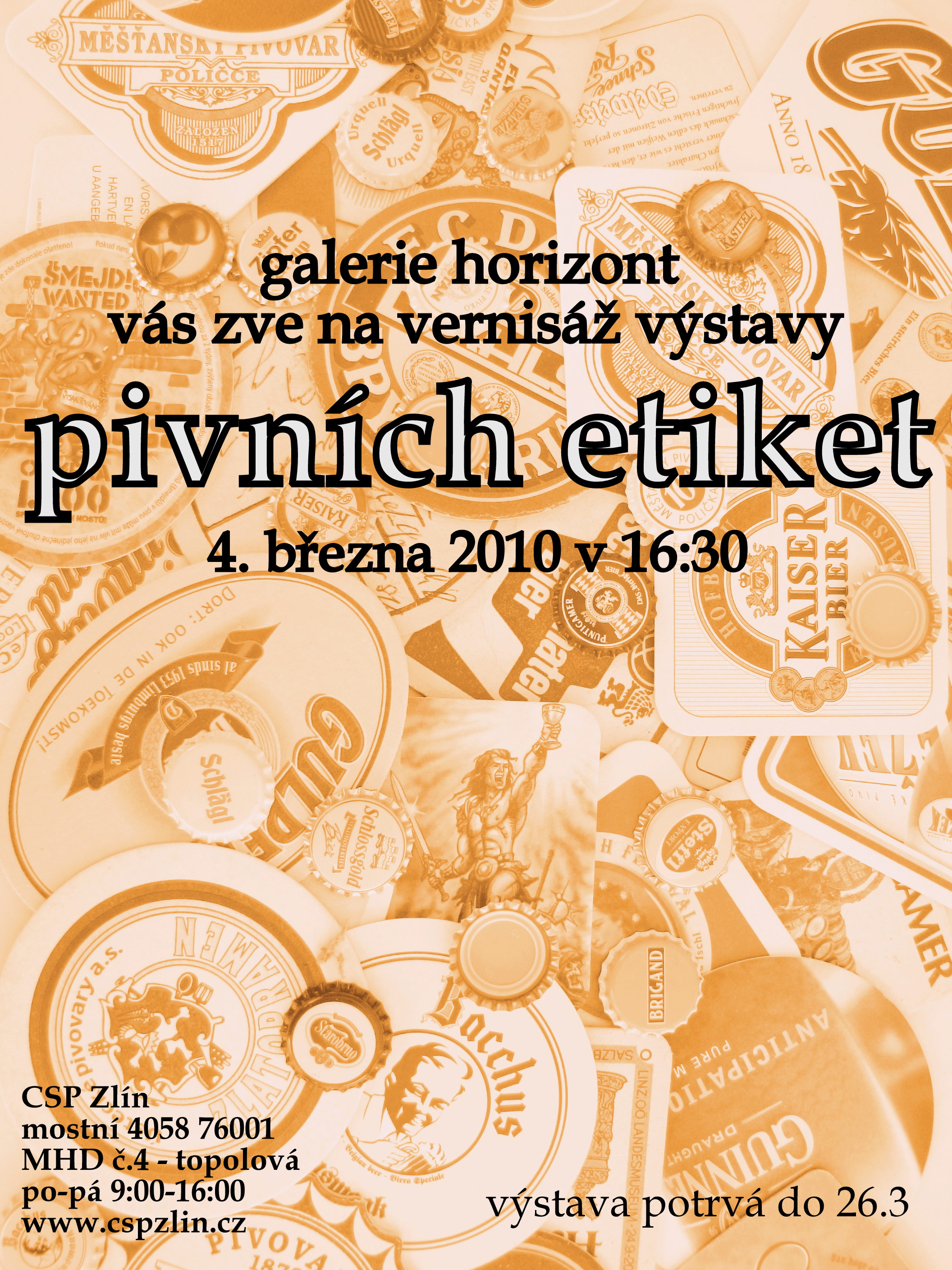 Naše galerie se dne 4. března na jeden měsíc promění na prostředí pivní kultury se stoly, pípou, ubrusy a pivními etiketami v zažloutlých rámech. Všichni sběratelé, milovníci pěnivého moku i náhodní kolemjdoucí jsou srdečně zváni.