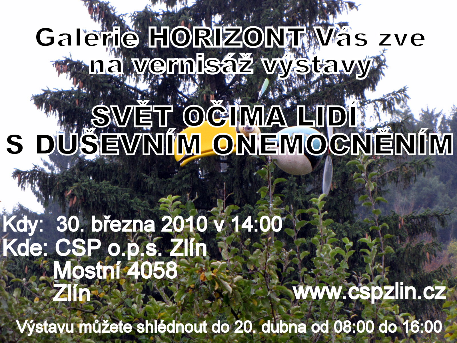 Naše galerieVás zve dne 30. března na vernisáž výstavy SVĚT OČIMA LIDÍ S DUŠEVNÍM ONEMOCNĚNÍM, budete mít možnost shlédnout fotografie z života v centru, ale také snímky z fotokroužku vedeného pracovníkem Jiřím Paškou. Výstava potrvá do 20. dubna, těšíme se na Vaši návštěvu.